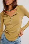 Dried tobacco long sleeve round hem slim-fit henley button shirt with exposed seam detailing95% Cotton, 5% ElastaneMachine wash cold