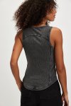 Black ribbed scoop neck round hem overall inspired buckle-loop strap tank95% Cotton, 5% ElastaneMachine wash cold