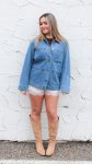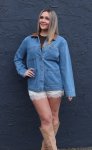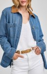 Light wash denim contrast corduroy collared long sleeve patch pocket metal button front jacketModel is wearing size S100% CottonMachine Wash Cold (Gentle Cycle). Hang to Dry.