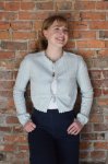 85% Cotton, 15% Nylon. Light blue, bow-tie front cardigan with scalloped hemline and neckline. Bow and stripe details throughout.Model wearing size smallhand washable