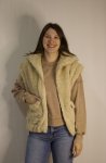 100% polyester, lined with 100% polyester, beige fur vest, oversized fit, front pockets, zipper front closure, high collarmodel is wearing size smallmachine washable