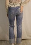 93% cotton, 5% polyester, 2% spandex, slimmer fit with cuffed straight leg, medium wash with hole in knee machine washable model is wearing size 25