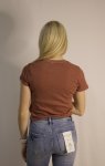 100% cotton, rustic colored baby tee, black graphic detailingmachine washable model is wearing size xs