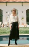 Black luxe satin high-rise midi skirt with invisible zipModel is wearing a size S100% PolyesterHand Wash Cold, Hang to Dry or Dry Clean