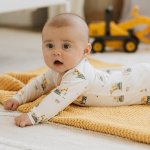 Off white diggers print long sleeve 2-way zip footed sleeper55% Organic Cotton, 40% Modal, 5% ElastaneMachine wash cold (inside out, gentle), tumble dry low