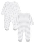 White elephant print long sleeve 2-peice footed onesie set100% Organic CottonMachine wash cold, tumble dry low