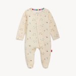 Ecru "Special Delivery" stork printed long sleeve footed onesie with magnetic closure94% TENCEL™ modal, 6% elastaneMachine wash cold, tumble dry lowClose magnetic fasteners before wash and dry to avoid damage.