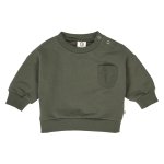 Deep green long sleeve pocket sweatshirt. Snap closure at necklineOrganic cotton 95%, Elasthane 5%Machine wash cold, tumble dry low