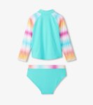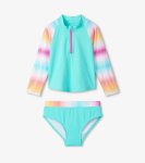 Turquoise shimmer long sleeve swim rashgaurd with matching swim bottom set88% Nylon, 12% SpandexMachine wash cold (gentle), tumble dry low/air dry