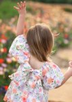 Lavender picnic floral print short cap sleeve decorative back bow dress with elasticated neckline100% CottonLining: 100% PolyesterMachine wash cold, tumble dry low