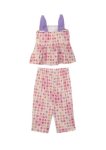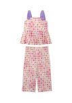 Light pink petal power print elasticated neckline tie strap top with matching elastic waist wide leg bottoms100% PolyesterMachine wash cold, tumble dry low