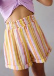 Lilac short flutter sleeve tied hem top with matching striped elasticated waist shortsTop: 95% Cotton, 5% ElastaneBottom: 83% Viscose, 17% PolyamideMachine washable