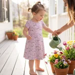 Light purple cow-girl print cap sleeve empire waistline swirly dress95% Bamboo Viscose 5% SpandexMachine washable