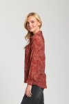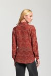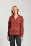 Terracotta filligree print long flounce sleeve collared half-placket pullover blouse64% Cupro, 36% ViscoseMachine wash with like colors (gentle), tumble dry low