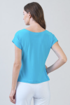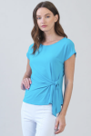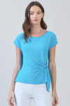 Bright turquoise short slant sleeve scoop neck straight hem side tie top70% Polyester, 20% Rayon, 10% SpandexWrinkle-FreeHand wash cold, hang dryMade in USA