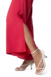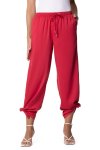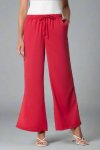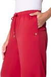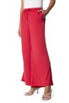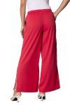 Cherry red drawcord wide leg side slit pant with mid-calf tie option
