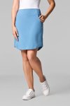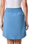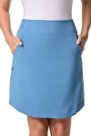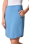 Blue dusk 4-way stretch elastic waist curved hem travel skort with pocketsModel is wearing a size MUPF 50+ Sun Protection88% Polyester, 12% Spandex
