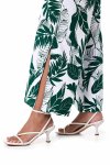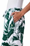 Eden palm paradise print wide leg side slit drawcord pant with mid-calf tie optionUPF 50+ protection100% Polyester