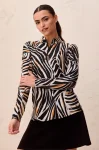 Tuscan tan printed texture knit performance pop-over quarter-zip mock neck long sleeve top