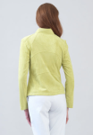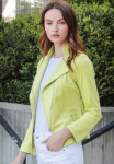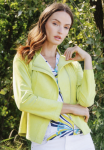 Lime soft suede notch lapel long sleeve upright collar asymmetrical zip jacket with silver hardware95% Polyester, 5% SpandexHand wash cold, hang dry