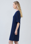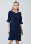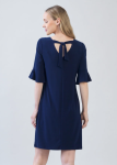 Navy vented elbow-length tulip cuff round scoop neckline straight shift hem back tie dressWrinkle-Free70% Polyester, 20% Rayon, 10% SpandexHand wash cold/Machine wash (gentle), hang dryMade in USA