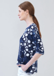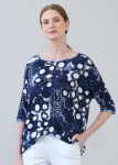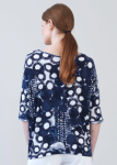 Navy circle splatter print round scoop neck loose cut upcurved hi-lo hem half sleeve top70% Polyester, 20% Rayon, 10% SpandexWrinkle-FreeHand wash cold, hang dryMade in USA