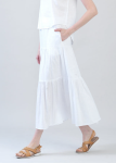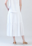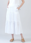 White textured knit double tiered elastic waist pull-on maxi skirt70% Cotton, 30% ViscoseHand wash cold, hang dry