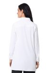 White tunic long sleeve button-down collared shirt with chest flap pocketsModel is wearing a size MUPF 50+100% Polyester