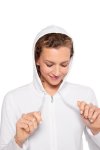 White long sleeve 2-way-zip split kangaroo pocket drawcord hoodieModel is wearing a size MUPF 50+52% Cotton, 43% Viscose from Bamboo, 5% Elastane