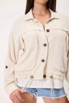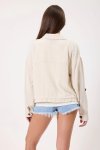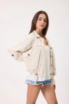 Khaki long sleve collared button front drawcord waist jacket with pocketsModel is wearing a size S75% Rayon 25% LinenHand wash cold, air dry