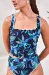 Surf blue tropical print square neck scallop edge swim tankini with built-in bra95% Nylon 5% ElastaneMachine wash cold (gentle), tumble dry low