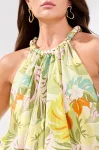 Kiwi zest printed voile braided neckline bubble hem blouse100% CottonMachine wash normal cycle cold water, with like colors, non-chlorine bleach when needed, tumble dry low, low iron if needed.