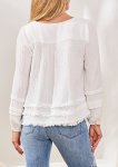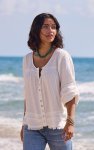 Ocean pearl crinkle gauze button front balloon sleeve frayed hem blouse100% CottonMachine wash normal cycle cold water, with like colors, do not bleach, line dry, low iron if needed.
