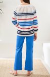 White, royal blue, and red striped crochet knit long sleeve sweater100% CottonMachine wash cold, tumble dry low