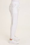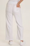 White twill elastic drawstring waist barrel-like pant with pocketsModel is wearing size S70% Lyocell, 30% PolyesterWaistband: 48% Cotton, 48% Modal, 4% SpandexPreshrunkMachine washable